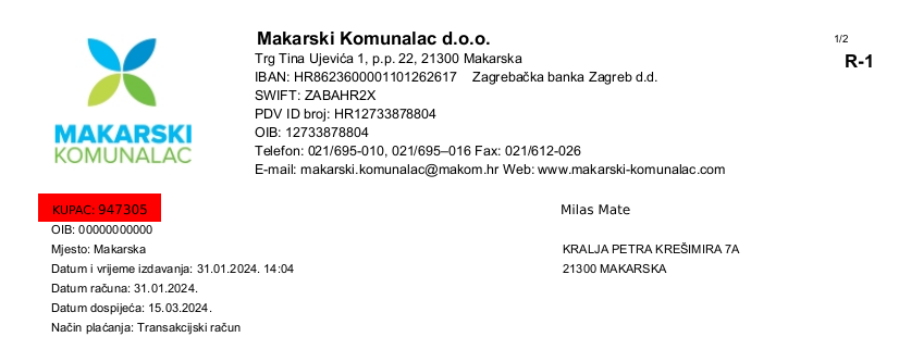 Pronađite šifru kupca na svom računu. Klikom na ikonu označeno je mjesto gdje se šifra nalazi.
